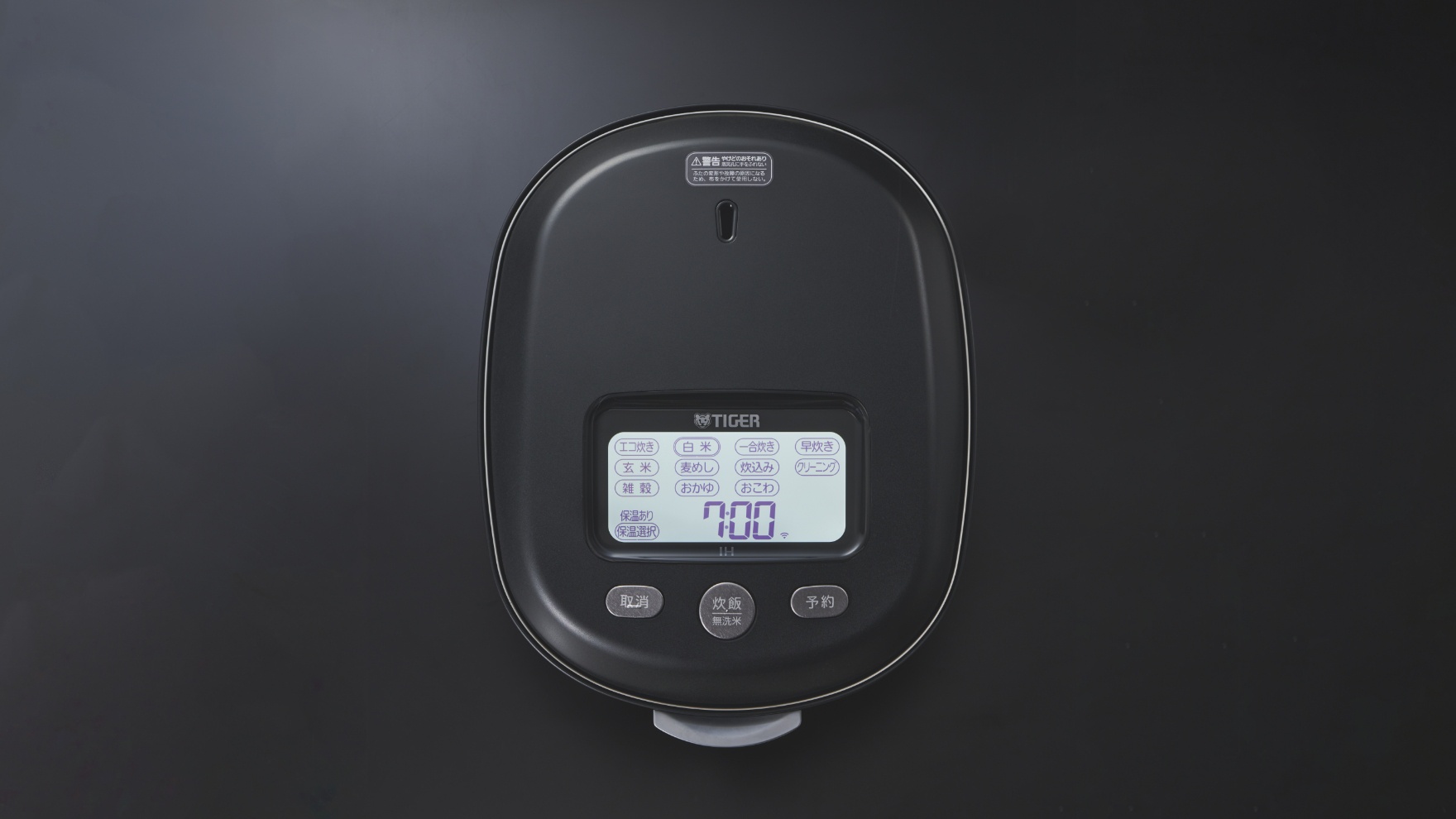 to the rice cooker status of cooking, keeping warm, and timer set, respectively,