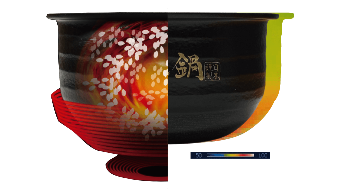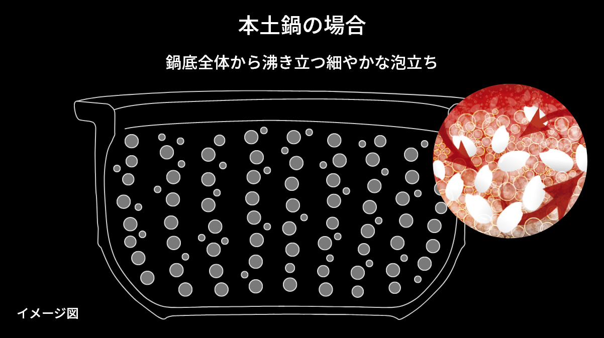 These structures distribute heat evenly to the entire ceramic inner pot, causing intense but gentle heat convection, so that heat is transmitted to each grain of rice efficiently and thoroughly.