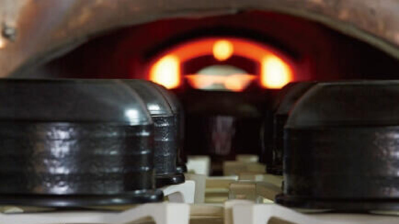 Authentic donabe that have been shaped go through the drying and firing processes. In the kilns, firing temperatures are strictly controlled to prevent unevenness in temperature between two donabe or between parts of the same donabe.