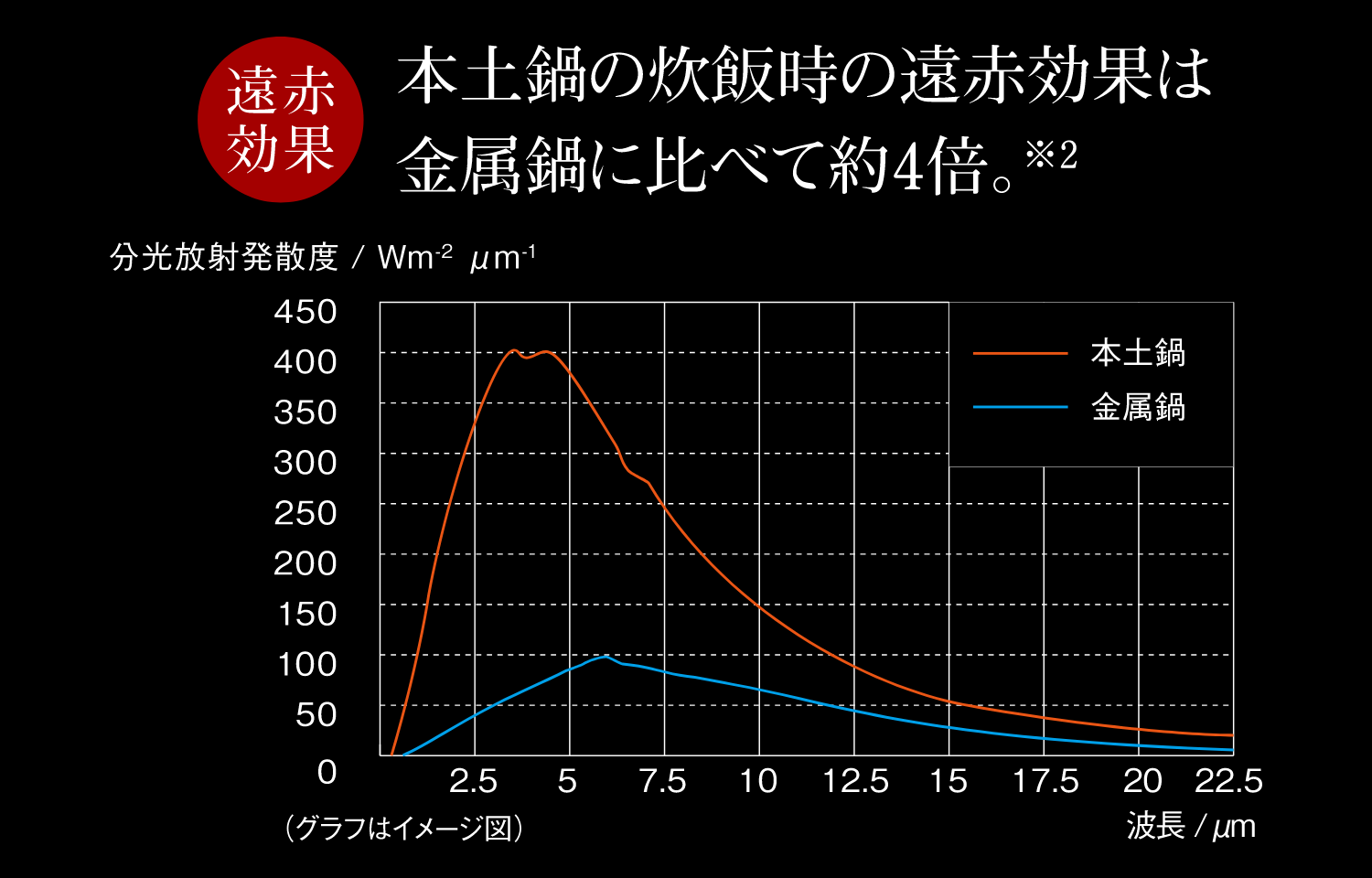 The far-infrared radiation effect is approx. four times*2.