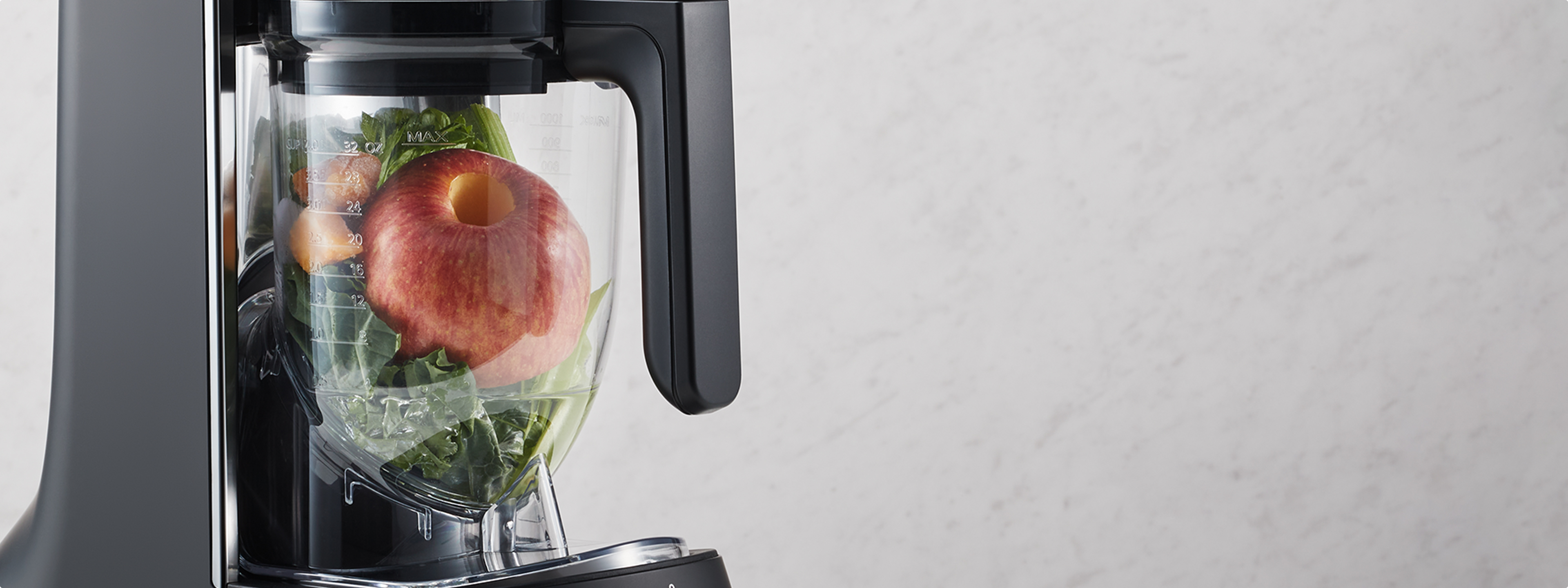 The inclined structure allows ingredients to hit the cutter effectively, resulting in high cutting power. This allows you to ingest whole ingredients without losing any of their nutritional content.