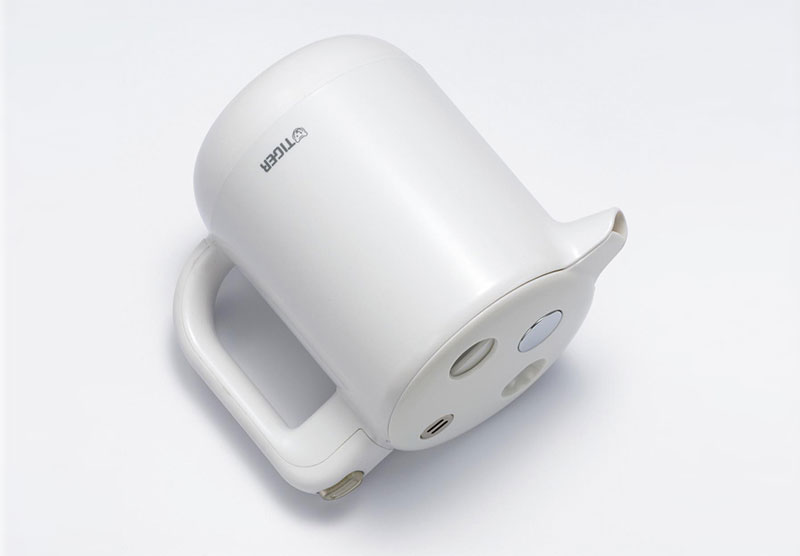 One product Takenori developed during this time was the Bakelite Tabletop Hot Water Pot, which went on sale in 1950. The design which featured a pelican-shaped spout to provide a cleaner flow and a handle for tabletop use, was revolutionary at a time when all other vacuum bottles were for portable use. In addition, since the product was for the table, it was designed with a one-touch opening lid which could be operated using the thumb of the hand gripping the handle. Takenori also devised this feature. This pioneering product, the handy pot, is now widely used in homes, restaurants, accommodation facilities and other places with tables.