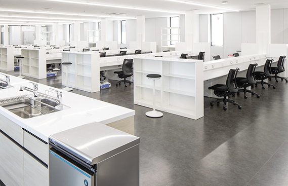 環境条件を変化させられる部屋など、さまざまなタイプの実験室を備え、新製品開発やコア技術の研究開発を担います。