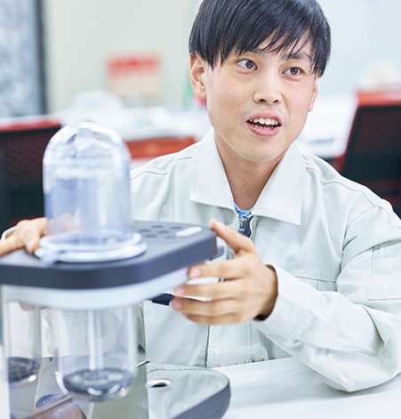 以前、ジャー炊飯器の部品に不具合があり、生産が止まってしまったことがありました。生産再開を急ぐあまり、手あたり次第に解析を行った結果、逆に再開が遅れることに…。どんな状況でも落ち着いて計画を立て作業に取り組むことが大切だと肝に銘じて、仕事にあたっています。