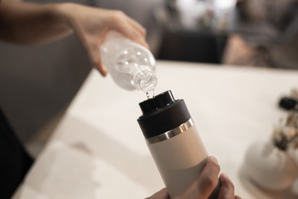 朝は温かいお茶を入れていき、午後はお気に入りの炭酸水を入れるなど、1本で色々なドリンクが楽しめるのも魅力。