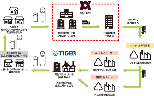 ▲タイガー魔法瓶㈱と亀岡市の再資源化モデルのイメージ図