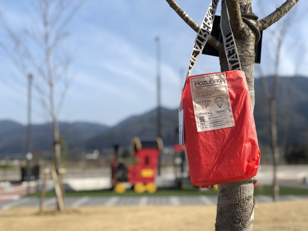 山内 五感で環境問題を捉えてもらうために、まちづくりにアートを生かす取り組みも行っています。「KAMEOKA FLYBAG Project」では、パラグライダーの生地を使ってアーティストさんが作成した7~8メートルの巨大なエコバッグをクレーンで掲げて展示しました。その後、一般の方々も参加して生地を切り取ってオリジナルのエコバッグを作りました。この取り組みは、「HOZU BAG」としてブランド化され、販売されるなど、経済活動にも波及効果をもたらしています。