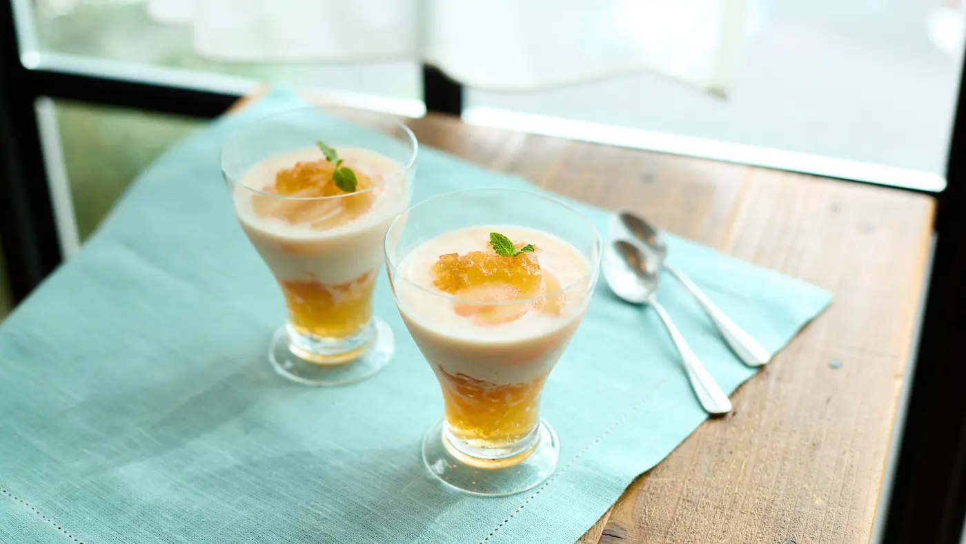 紅茶ゼリーと桃のフローズンドリンク