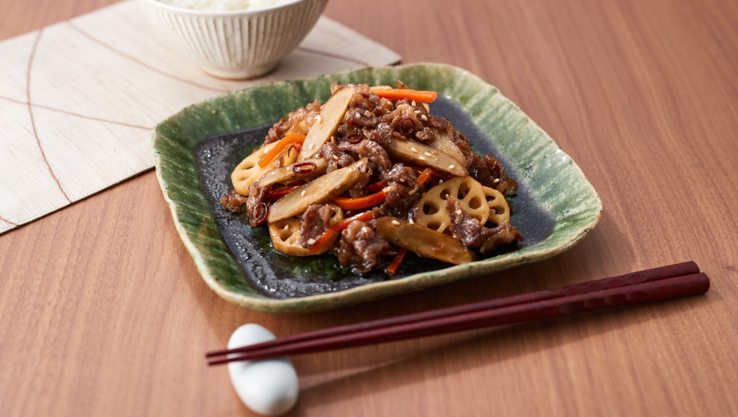 牛肉をやわらかく仕上げたい場合は、手順3で一度牛肉を取り出し、手順4の最後で戻してください。