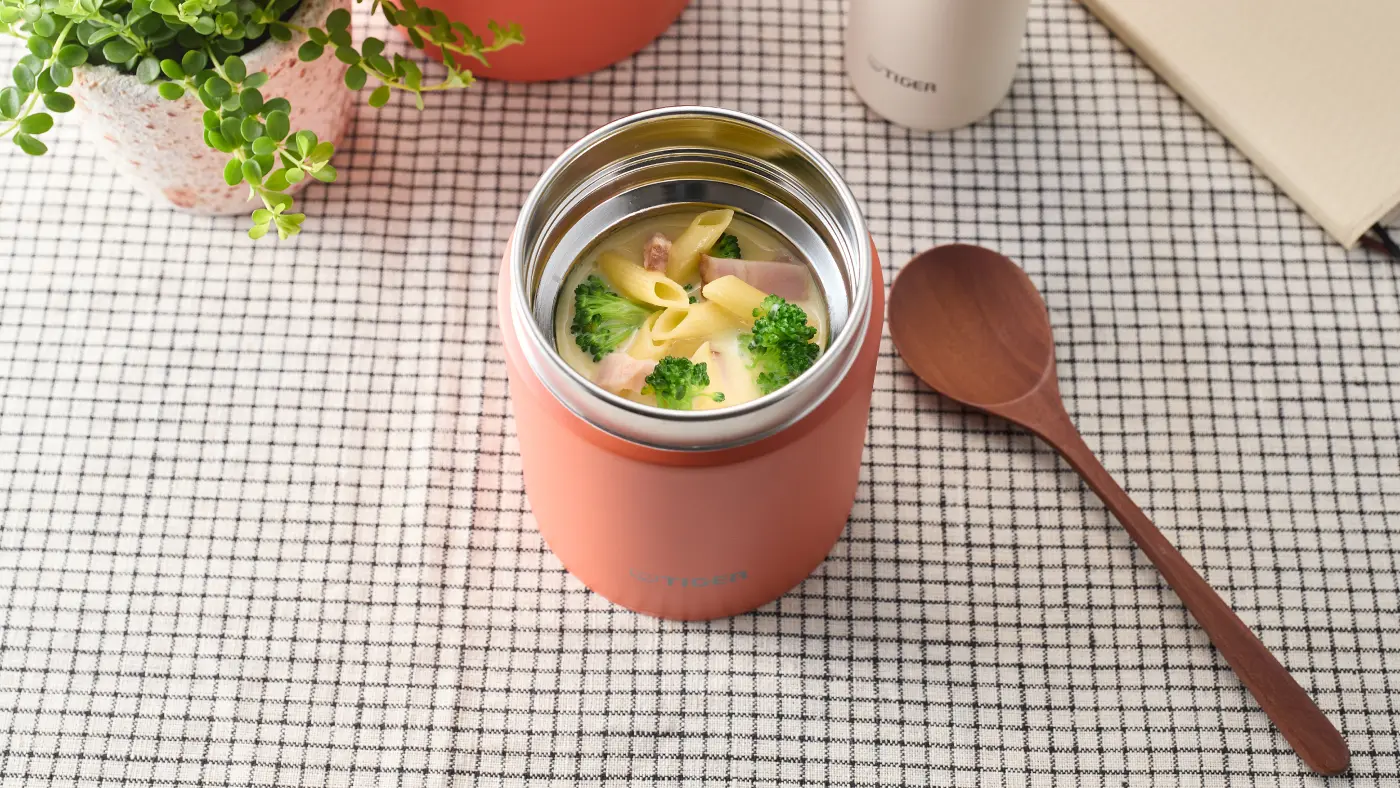 フードジャーに熱湯(分量外)を入れ、ふたを閉めて30分以上保温する。