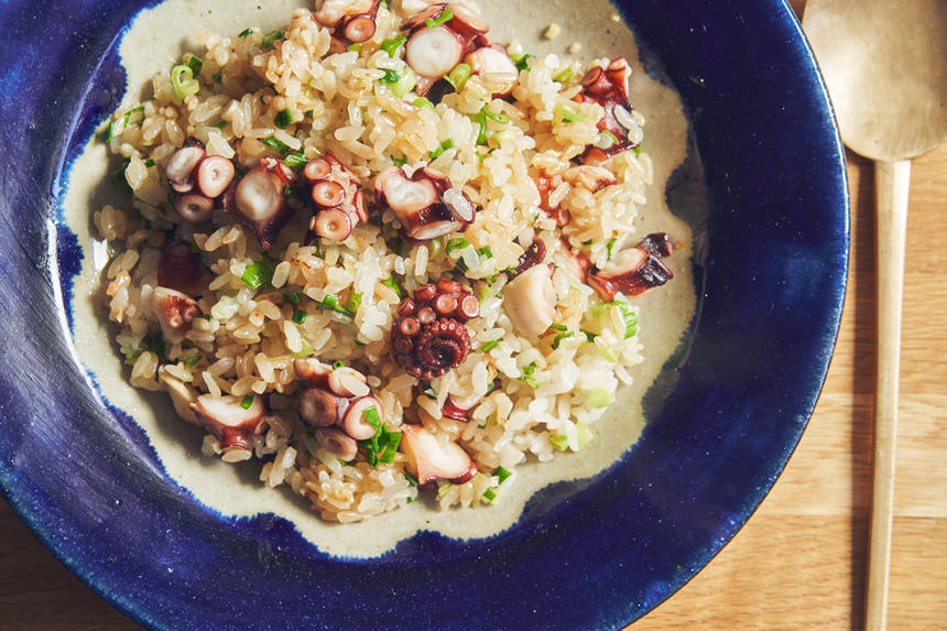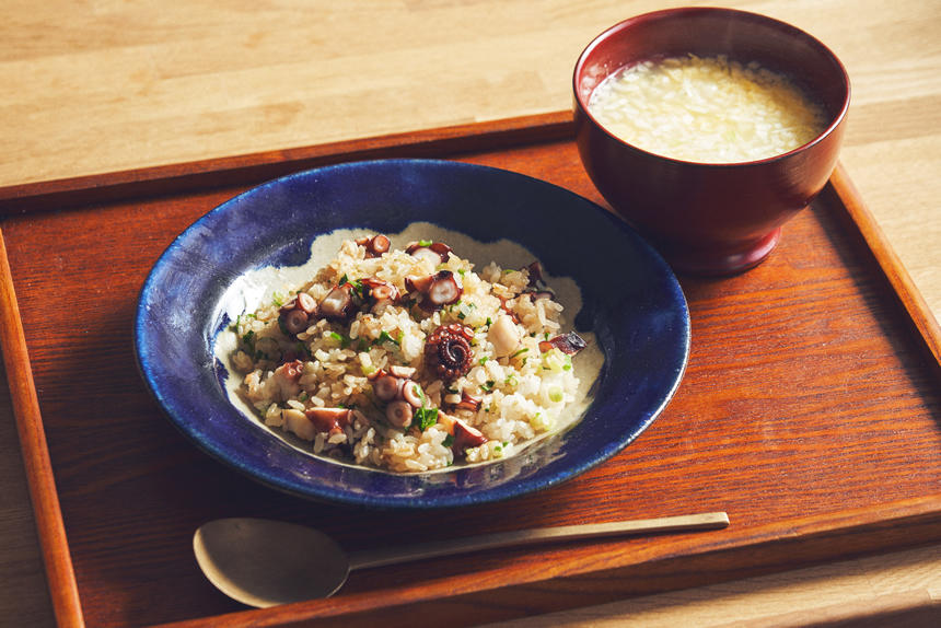 ごはんを少し多めに炊いてしまった時など、何かと持て余してしまう「残りごはん」を使って、自炊料理家の山口祐加さんが簡単でおいしいレシピを紹介するシリーズ。第2回は、「たことねぎのガーリックチャーハン」と、それと相性ぴったりな「刻み玉ねぎと卵のスープ」をご紹介いただきます。ペコペコのお腹をがっつり満たしたいときに最適のメニューです!