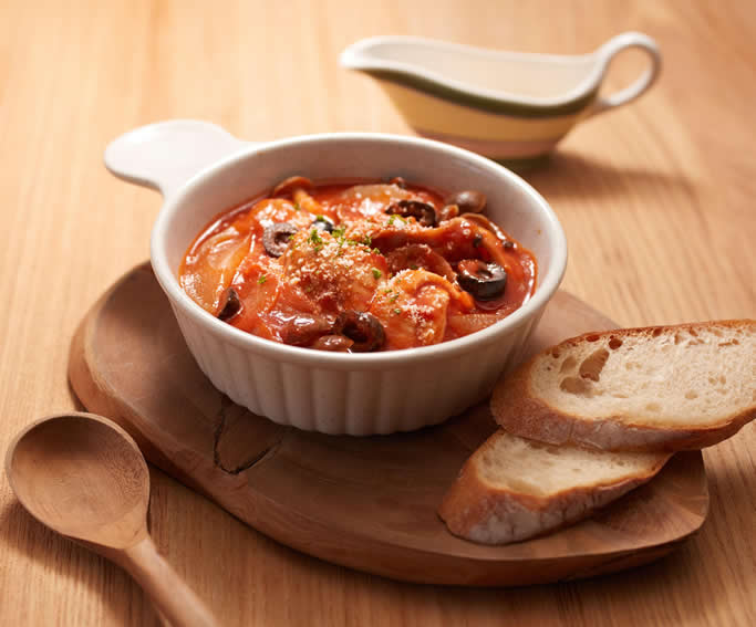 炊飯器調理レシピでオススメしたいのが「鶏肉としめじのトマトソース煮込み」です。鶏肉250グラム・しめじ1パック・玉ねぎ1/2個・トマトソース1缶と、調味料を入れて「調理」メニューを選択し、調理時間を15分にセットして「炊飯」キーを押せば、ほったらかしでできあがります。とても簡単ですし、味も最高ですよ!