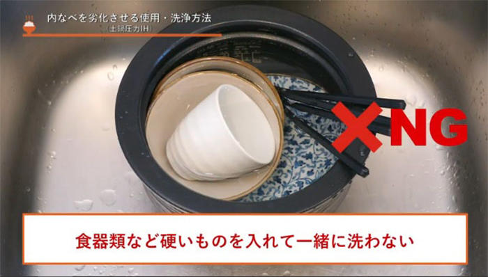 禁止事項の第1回は「内なべを劣化させる使用・洗浄方法」です。