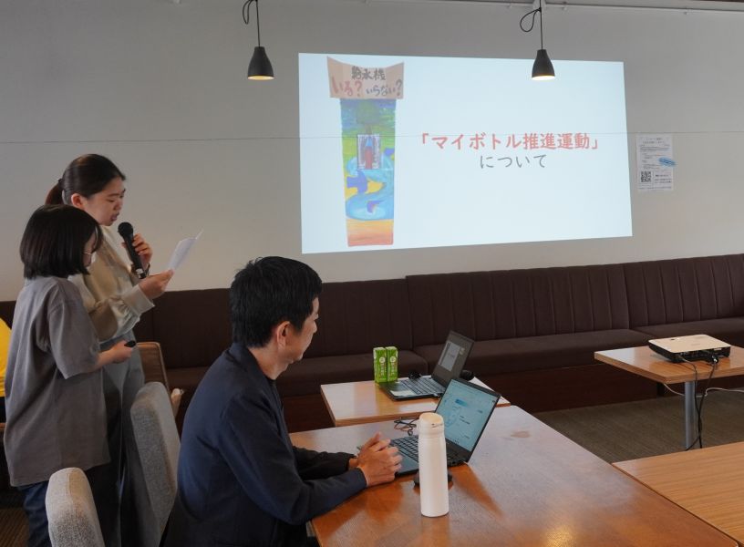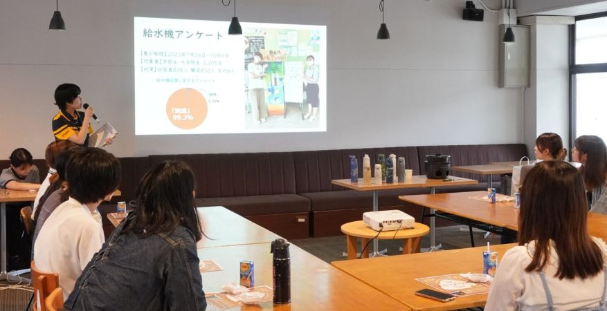 大阪樟蔭女子大学の学生が主体となって環境問題の解決を目指す「ecoプロ」では、プラスチック問題やCO2削減などの問題解決に向けて、「自分たちができる範囲で、身近なことから取り組む」を目標に活動を展開しており、学内に給水機を設置するなど、積極的に学内でのマイボトル推進活動をおこなっています。