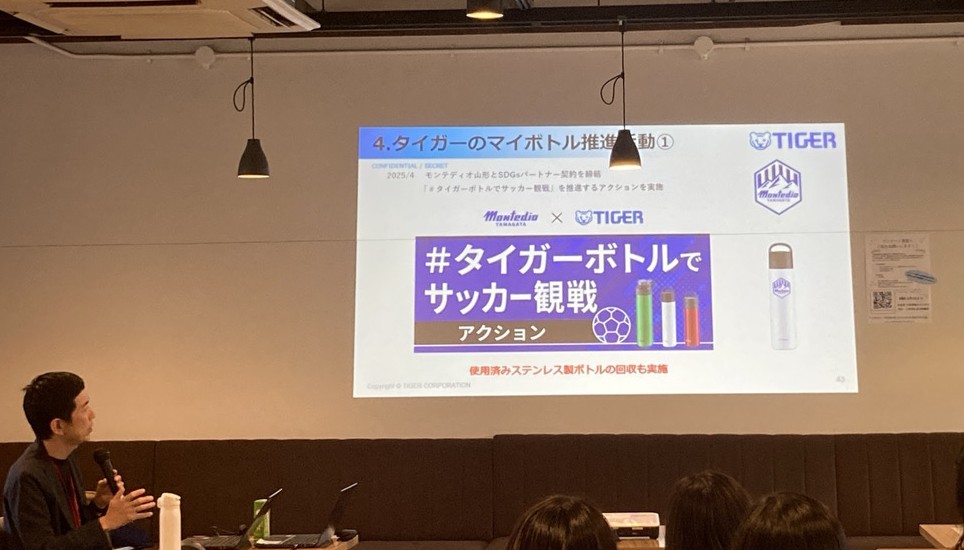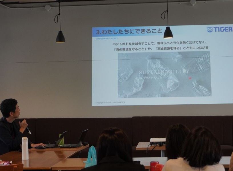 この特別出張講演は、24年度よりタイガー魔法瓶が立ち上げた「タイガー魔法瓶 マイボトルでSDGsプロジェクト for School 」の一環で、将来を担う学生たちに身近なマイボトルの使用や魔法瓶リサイクル活動を通じて、地球環境や温暖化について考えることを目的に取り組みを行っております。