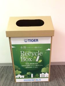 当社では使用済みのステンレス製ボトルの回収ボックスを全国400カ所以上に設置しております。素材がステンレスであることが明白なボトルをまとめて回収することで、リサイクル効率をあげて、純度の高いステンレス原料が確保できることを紹介。不要になったマイボトル再資源化の推進を行いました