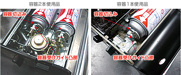 [1]Align the cartridge (canister) cutout with the convex cartridge insertion guide on the cartridge stove and load it in place.