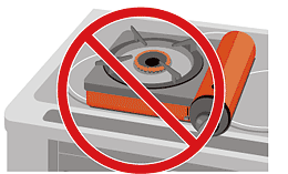 [2]Do not use or store the gas cartridge stove on another heat source (including electric cooking stoves, fish grill vents, electromagnetic cookers, etc.).The cartridge (canister) may explode if another heat source is turned on. |
