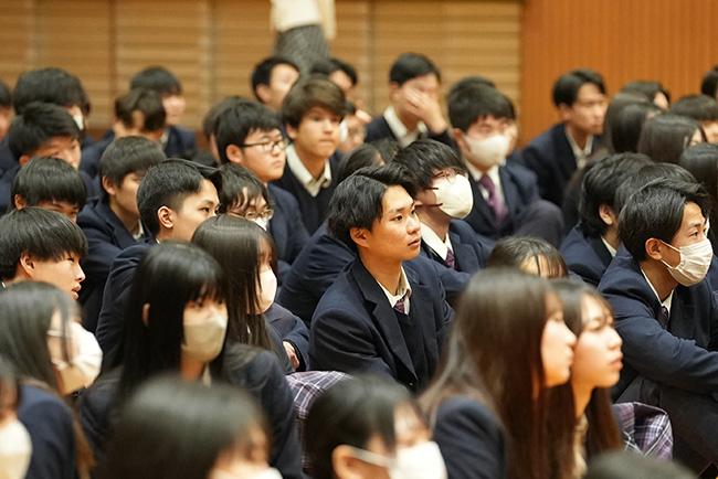 Also this year, the Tezukayama Gakuin High School Dance Club, the ambassadors of the “#Seisyun wo samasuna! Campaign” ambassadors, the Tezukayama Gakuin High School Dance Club, winners of the 16th Japan High School Dance Club Championships in the official summer national competition, also came from Osaka to perform a special stage performance to celebrate the event. The audience was moved by the powerful performance that brought the entire venue together, and all 260-plus students were riveted to the stage. Since the day before the event was Valentine’s Day, the Tezukayama Gakuin High School Dance Club presented the graduates with a surprise gift of chocolates, which brought them much joy.