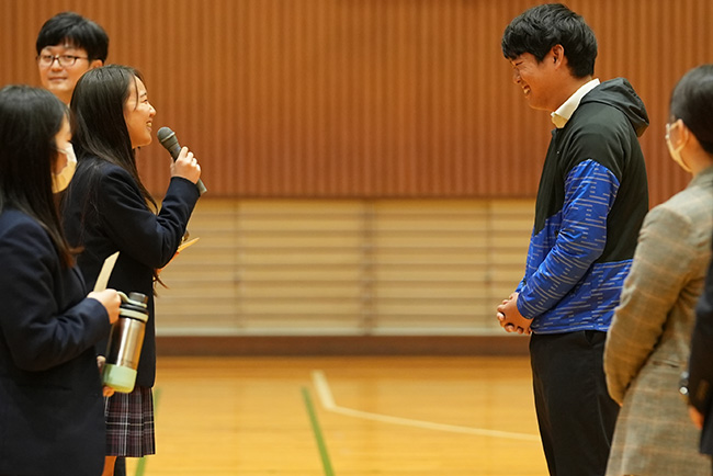 The presentation ceremony began with the graduates assembled in the gymnasium to practice for the graduation ceremony. The winner of this campaign, Mr. Mae, the senior vice principal of the school, presided over the ceremony and made a presentation about the project along with his congratulatory comments to the graduates. Mr. Mae said, “I entered the campaign so that everyone’s three years of youth would not be cooled down. Out of the many applications, we, the graduates of Kurashiki Suisho High School, were chosen!” I told them. The graduates were surprised by the unexpected surprise, but their smiles were happy to see the warmth of Mr. Mae’s wishes, and their applause was filled with joy.