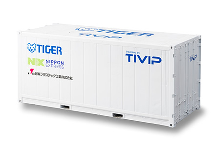 この断熱ユニットパネルを日本通運の輸送梱包ツールである「プロテクトBOXサーマル」などに採用することで、高性能な保冷輸送が可能となりました。従来の冷凍・冷蔵・定温輸送では、温度維持のために蓄冷材や蓄熱材の使用が必須でしたが、資材を不要とし、電力使用量の大幅な削減を実現します。