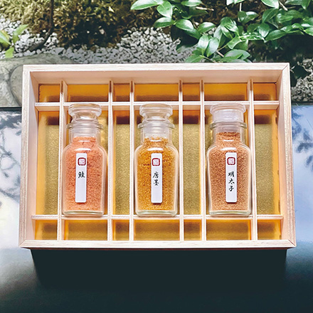 自家製のからすみ、鮭、明太子をフレーク状のふりかけにしました。自家製仕上げにより、素材本来の味わいをご堪能いただけます。