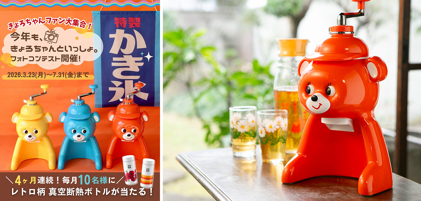熱制御テクノロジーで世界をリードするタイガー魔法瓶株式会社(社長:菊池嘉聡、本社:大阪府門真市)は、昭和の時代から長く愛され続けている氷削り器「きょろちゃん」の誕生から50年を記念して、2026年3月23日(月)よりSNSキャンペーン「今年も、きょろちゃんといっしょ。フォトコンテストキャンペーン」を開催いたします。
