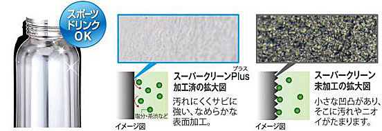 タイガー魔法瓶の真空断熱ボトルは、ボトルの内面になめらかで光沢のあるスーパークリーン/スーパークリーンPlus(プラス)加工を施しているため、汚れやにおいがつきにくくサビにも強いため、塩分が含まれているスポーツドリンクや経口補水液も安心して入れられます。