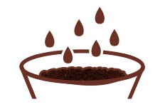 In shower dripping, a spray of hot water is poured all over the ground coffee to allow it to bloom slowly. This process allows the refreshing aroma and rich flavor of coffee without an unpleasant bitter or astringent taste to be brought out.