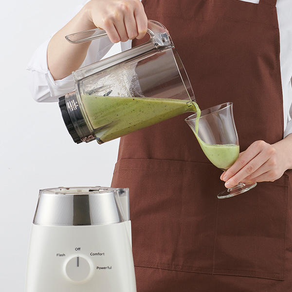 In Powerful mode, the mixer is able to crush the whole ingredients including the skins and seeds, making it possible to get a smooth texture of juice. You can save the time and effort needed to remove skins and seeds, and obtain plenty of nutrition. You can also reduce waste and continue healthy practices while enjoying delicious meals every day.