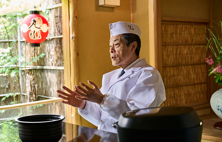 京都祇園にある料亭「祇園 丸山」にて丸山様に、