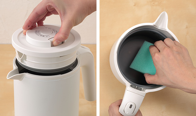 The wide mouth of the kettle makes it easy to clean the inner container.
