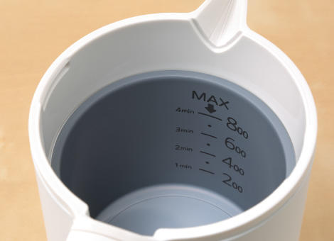 *As of April 20, 2023. The boiling time until activation of the auto shut off system was tested for a single-cup serving of approximately 140 mL at rated power consumption at a water and room temperature of 23℃ (based on our own measurement method)