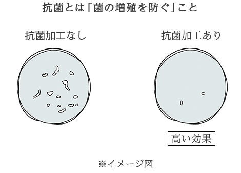 (*1) The proportion of bacteria on the surface of the product must be equal to or less than 1/100 that of a non-treated product, and the antimicrobial effect must remain after durability tests. Antimicrobial properties are determined from the results of tests conducted in accordance with the international standard ISO 22196.