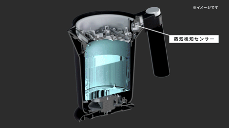 *For electric kettles sold in Japan as of April 20, 2023, based on publicly available data from each company (based on in-house research), the boiling time until activation of the auto shut off system was tested for a single-cup serving of approximately 140 mL at rated power consumption at a water and room temperature of 23°C (based on our own measurement method).