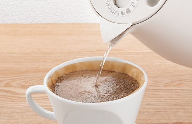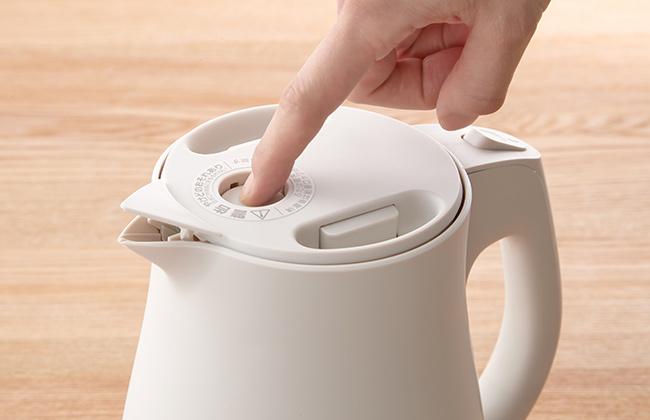 Setting the dispense lock button in the locked state prevents the hot water from coming out from the spout even if the kettle accidentally tips over. To pour, all you need to do is hold it with one hand and press the button.