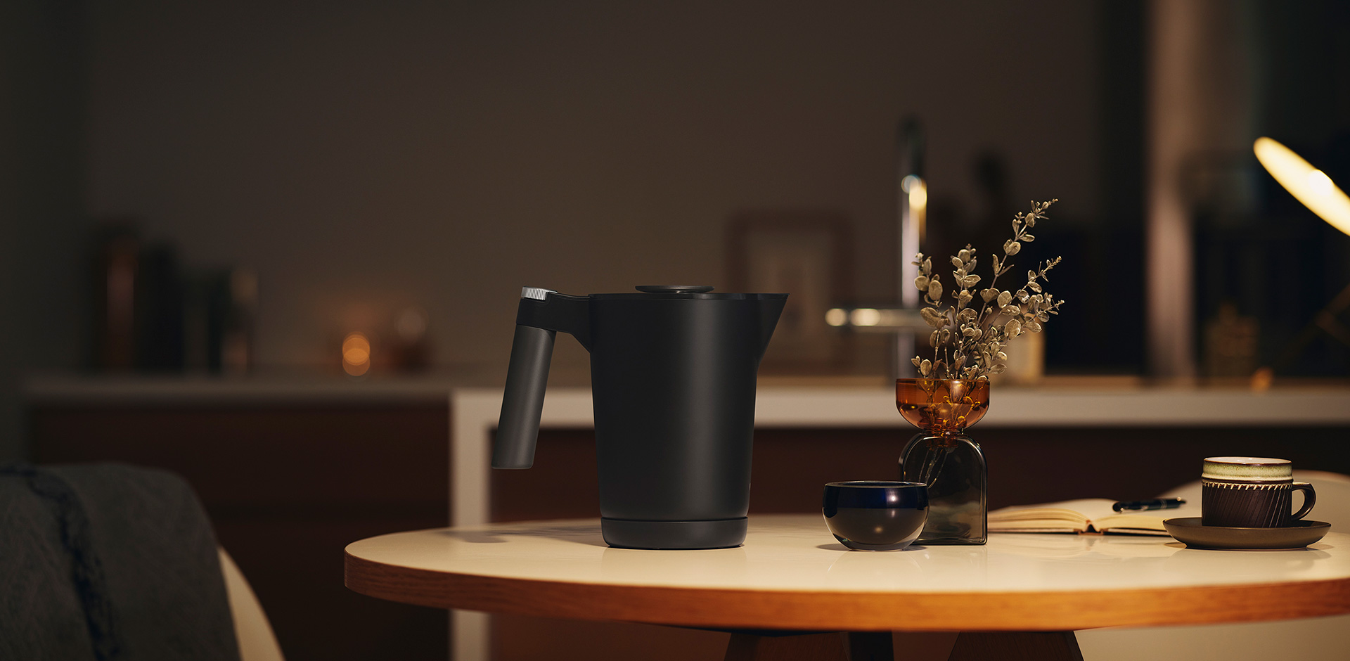 We aimed to create an appearance that blends in with the interior, a departure from the conventional designs of electric kettles. The design adds refinement not only to the kitchen, but also to the living room, dining room, or any other space.