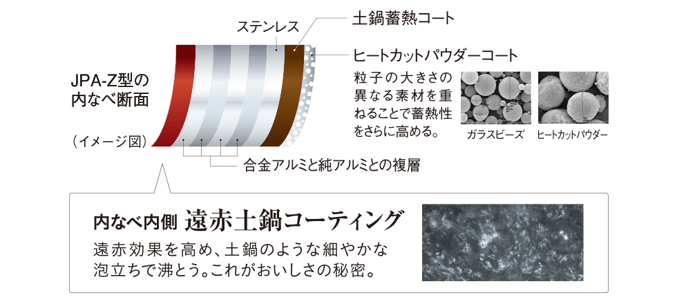 Compared with a conventional Tiger product, the far-infrared effect has been enhanced because of an increase in the amount of the ceramic powder used for the heat-sealing ceramic coating used on the exterior of the inner pot.*2