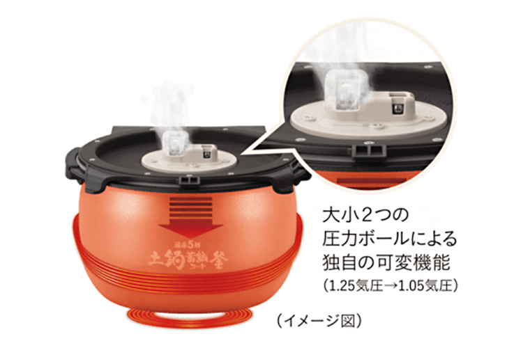 - *1Temperature of the inner pot when boiling at 1.25 atm. (Based on our research)