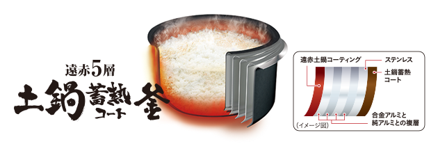 The “far-infrared ceramic coating” on the inside of the pot causes the rice and water to boil with fine bubbles as if the rice was cooked in a clay pot. These coatings produce a delicious taste comparing favorably with that of rice cooked in a clay pot, bringing out the natural sweetness of the rice and its springy texture.