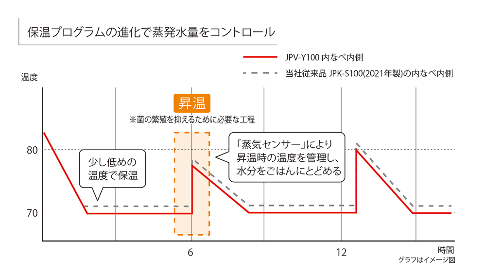 Savor the taste of rice cooked in a ceramic inner pot, regardless of whether it’s freshly cooked or kept warm.
