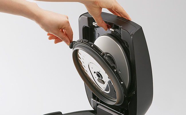 The handles on the inner pot make it easy to remove the pot from the main unit and carry it.