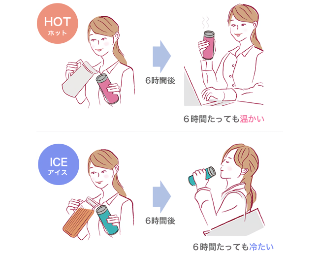 Hot drinks will stay hot and cold drinks will stay cold, so drinks can be kept at the best temperatures for drinking for 6 hours.