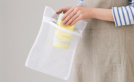 (Put the pouch in a laundry net and select a hand wash option* on your washing machine.)