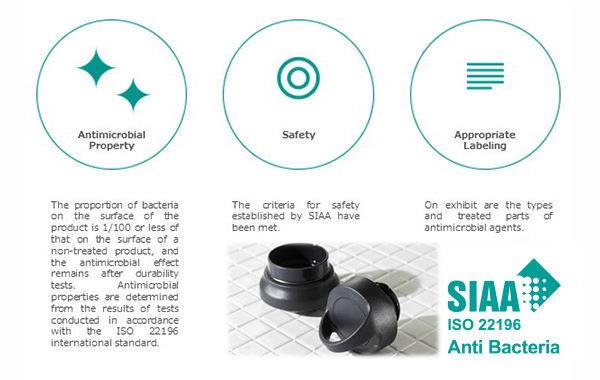 We adopted the antibacterial process in the plastic lid parts certificated by SIAA, in order to offer hygienic bottles to daily life. Products that meet the following three criteria are authorized to indicate SIAA marks, “Antimicrobial property”, “Safety”,and “Appropriate Labeling”.