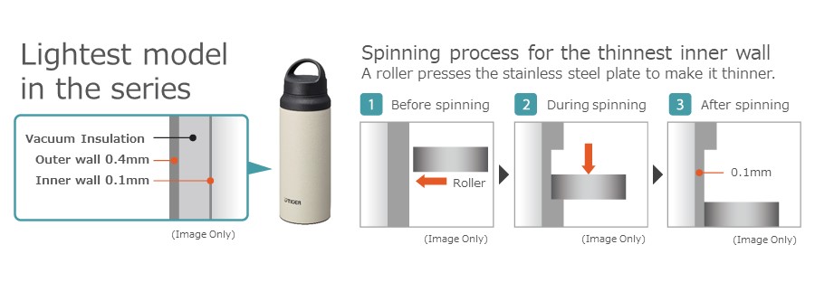 To make it lightweight and easy to carry, the stainless steel plate is pressed and thinned to an utmost the thickness by the spinning roller in the manufacturing process. Minimizing the material in this way contributes to ethical consumption.