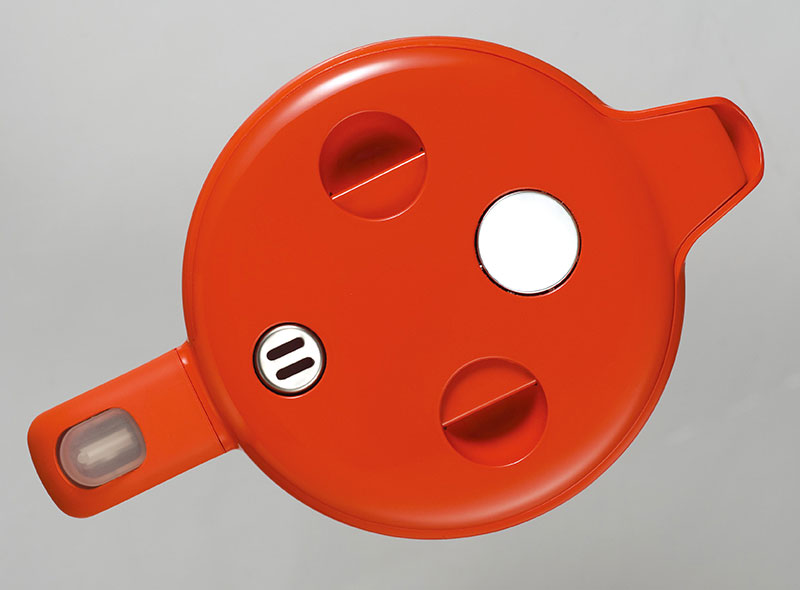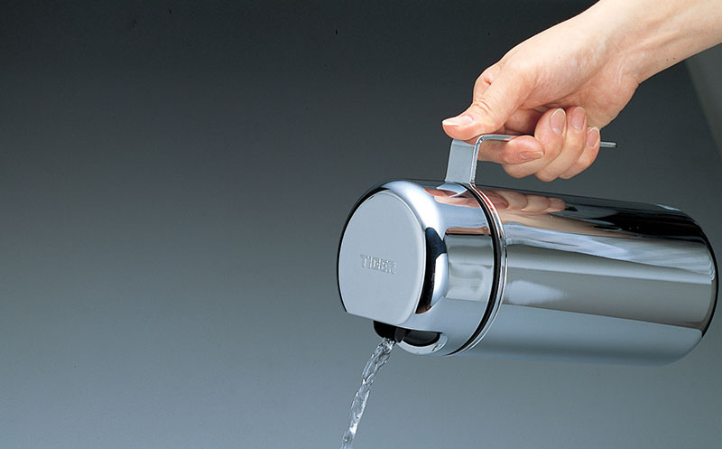 One product Takenori developed during this time was the Bakelite Tabletop Hot Water Pot, which went on sale in 1950. The design which featured a pelican-shaped spout to provide a cleaner flow and a handle for tabletop use, was revolutionary at a time when all other vacuum bottles were for portable use. In addition, since the product was for the table, it was designed with a one-touch opening lid which could be operated using the thumb of the hand gripping the handle. Takenori also devised this feature. This pioneering product, the handy pot, is now widely used in homes, restaurants, accommodation facilities and other places with tables.