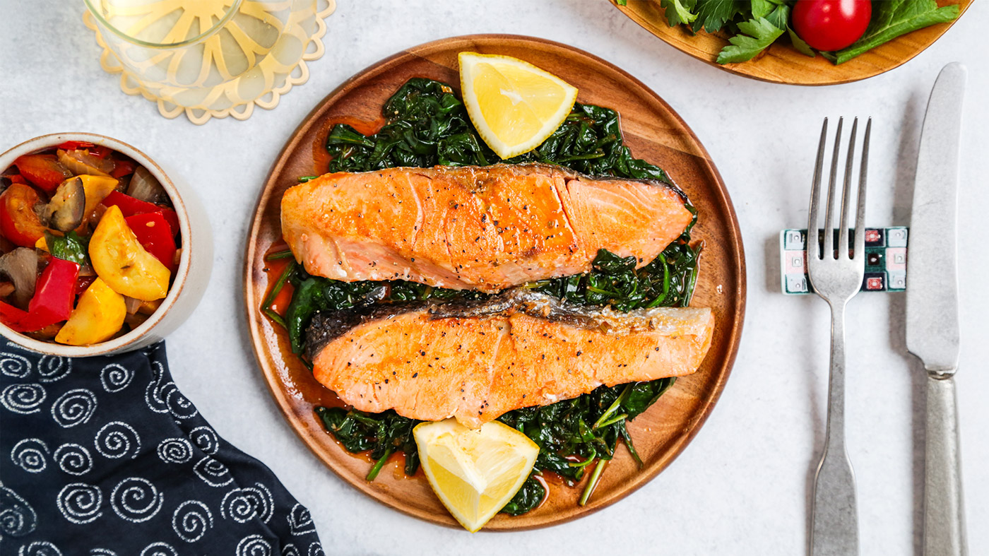 Salmon and garlic spinach is one of those classic combinations we associate more with fine dining than an easy, one-pot weeknight dinner at home (quite possibly in sweatpants in front of the TV). And that’s because getting the little things right makes all the difference – like making sure the fish is flavorful and flaky – and the sauce is assertive and heady. We’re using smoked paprika and dill for a one-two punch of smoky and tangy. And honey, olive oil and lemon juice deliver a sweet brightness that compliments salmon’s natural rich butteriness.