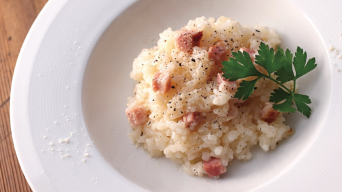 And it’s usually pretty tricky to nail the cooking technique of risotto. But we may have a little trick up our sleeve for making a delectable bacon and Parmesan risotto at home with minimal effort.