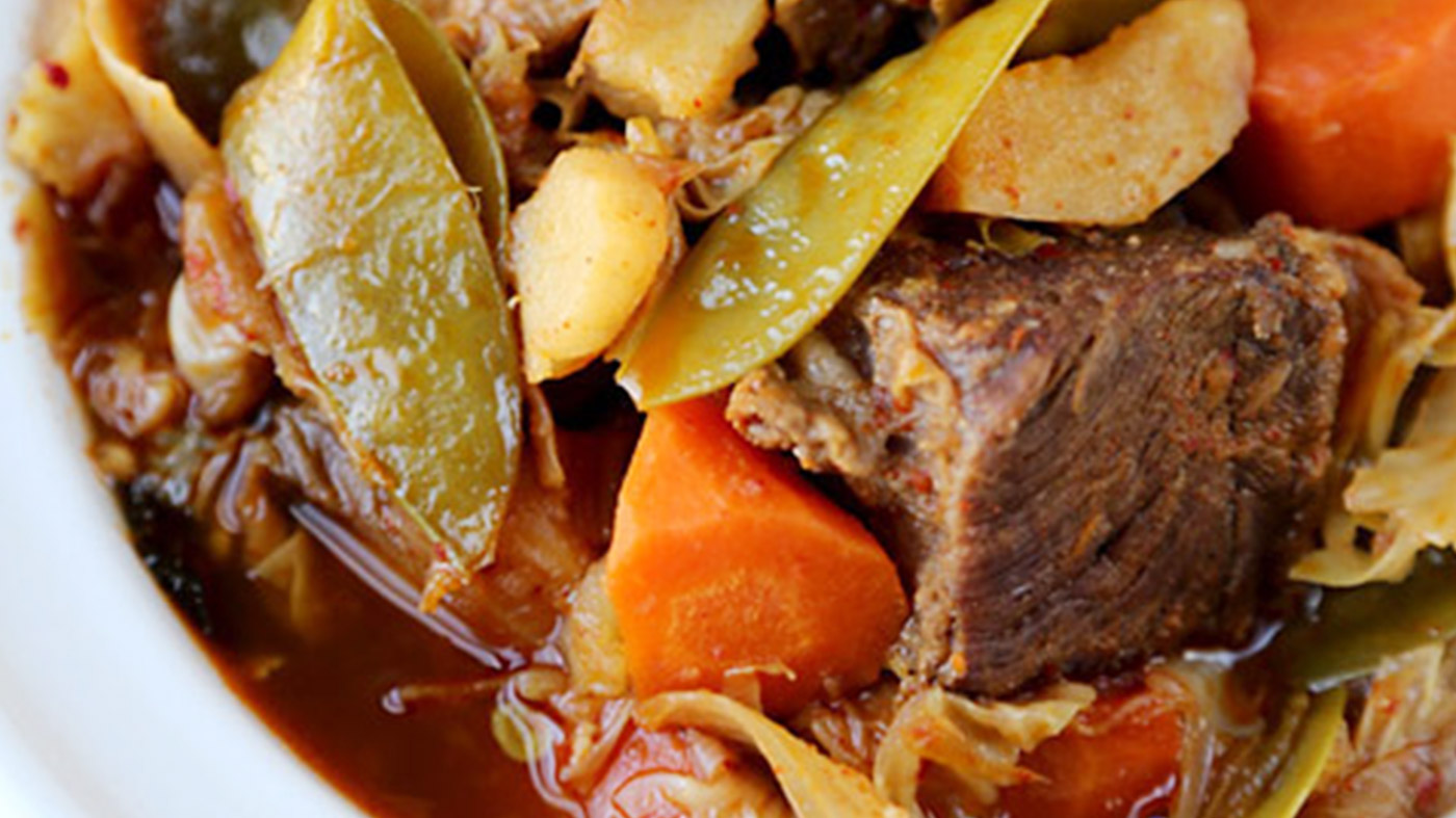 - Add potatoes, carrots and snow peas and cook for 30 minutes.
